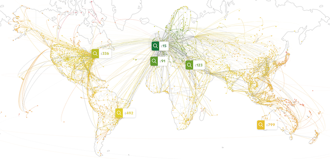 You can choose from hundreds of destinations, all colour coded by price. You can also narrow down your search by continent, region or country and add in filters such as non-stop flights only, popularity and whether a visa is needed for travel.