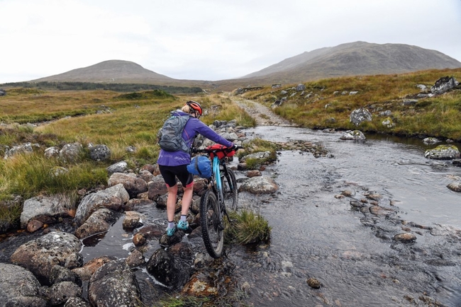 We awake bright and early on day two to sunshine and huge views of the mountains from our loch-side camping spot. The temperature has dropped dramatically, however, and as we enjoy a coffee and breakfast of oat bars, I realise I’m now wearing all of the clothing I brought with me. On the upside, this means my bike packs are much lighter as we set off for the day’s ride - a 37 mile meander along a well-maintained track around the northern shore of Loch Ossian.